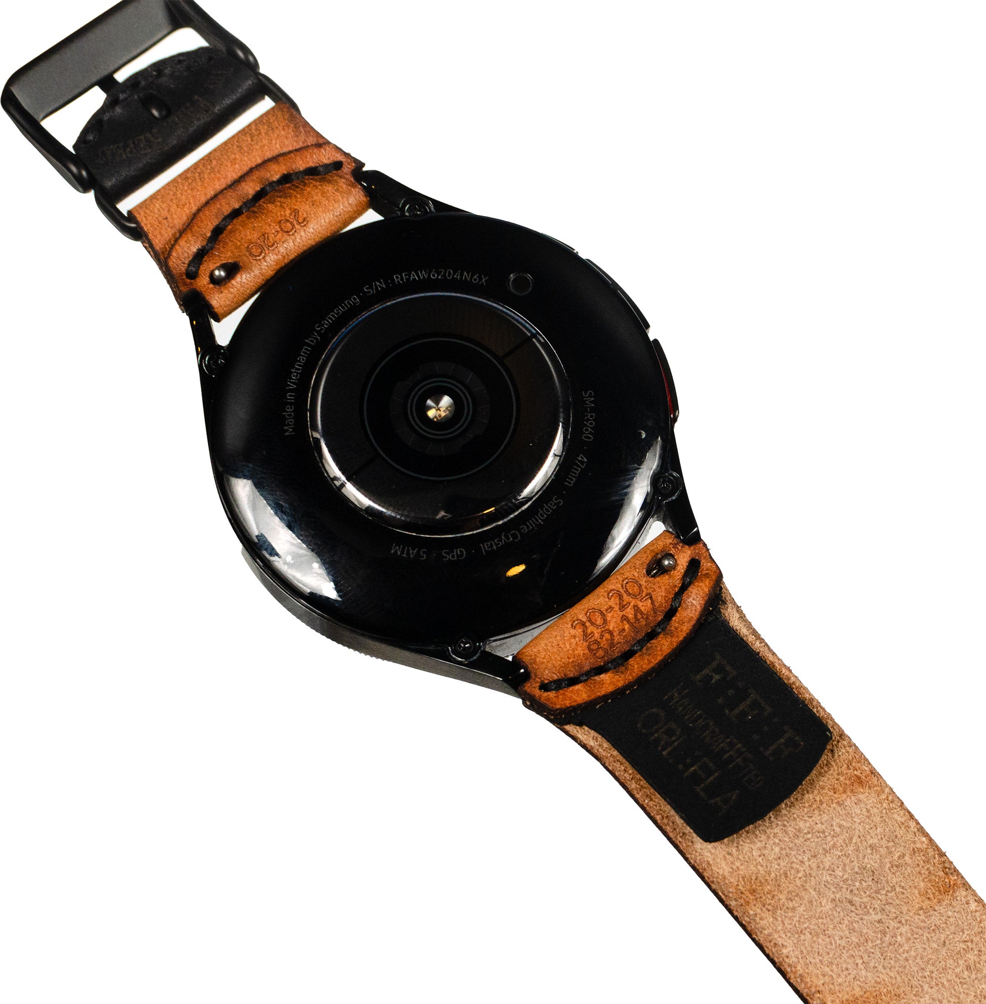 Band includes a quick-release 20mm springbar to fit just about every galaxy watch, with an extension out to align with the edge of the watch just past the lugs, then 'swoops' back gently to a standard 20mm band.