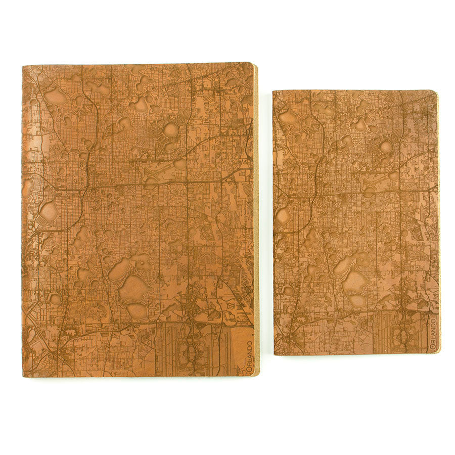 Space for two of your selected size Moleskine Cahier Notebooks (one notebook included). Easily replaceable with offerings from Amazon or your local paper goods store.