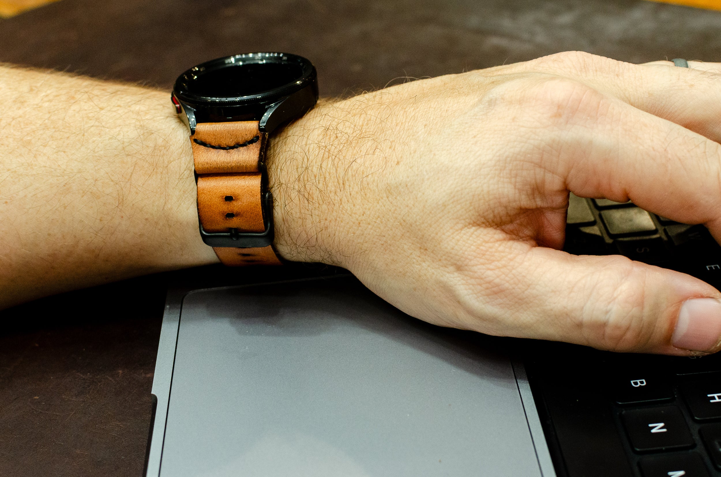 We took our signature closure-on-the-side-of-your-wrist-so-it's-super-comfortable (because it doesn't bang against your laptop or dig into the bottom of your wrist) design concept originally found in our button-stud watchband and meticulously adjusted the dimensions and design to work with standard watch buckles and complement the clean lines of the Samsung Galaxy Watch.