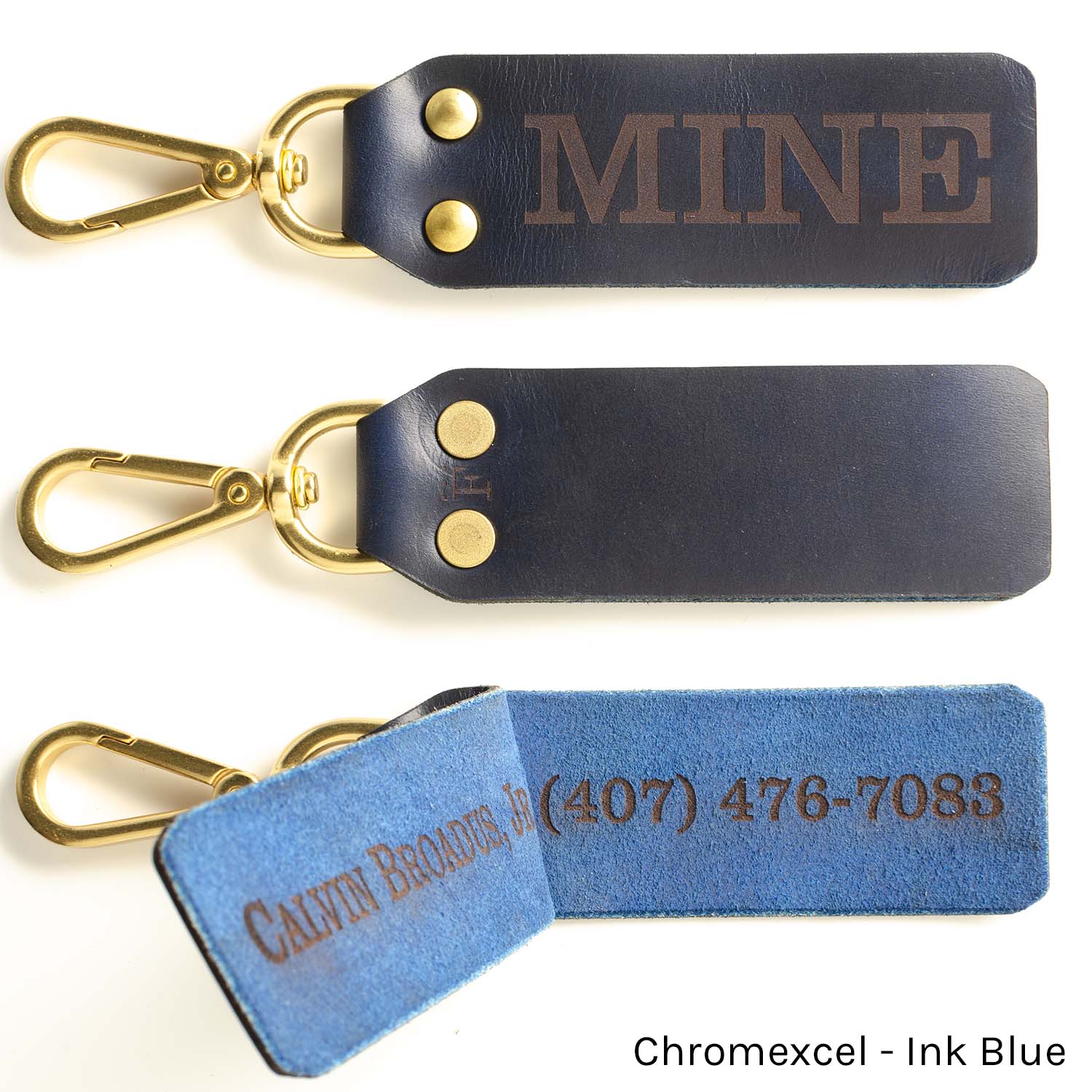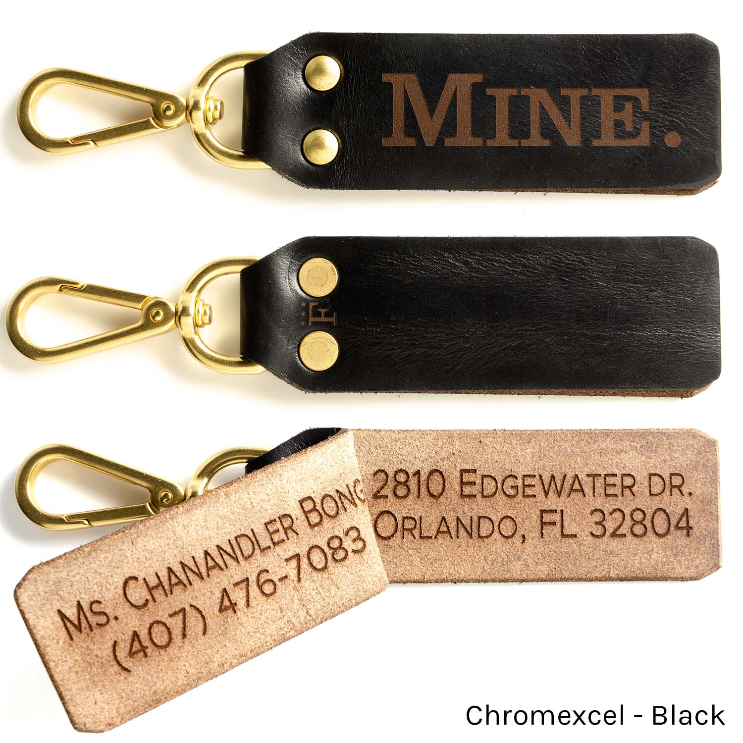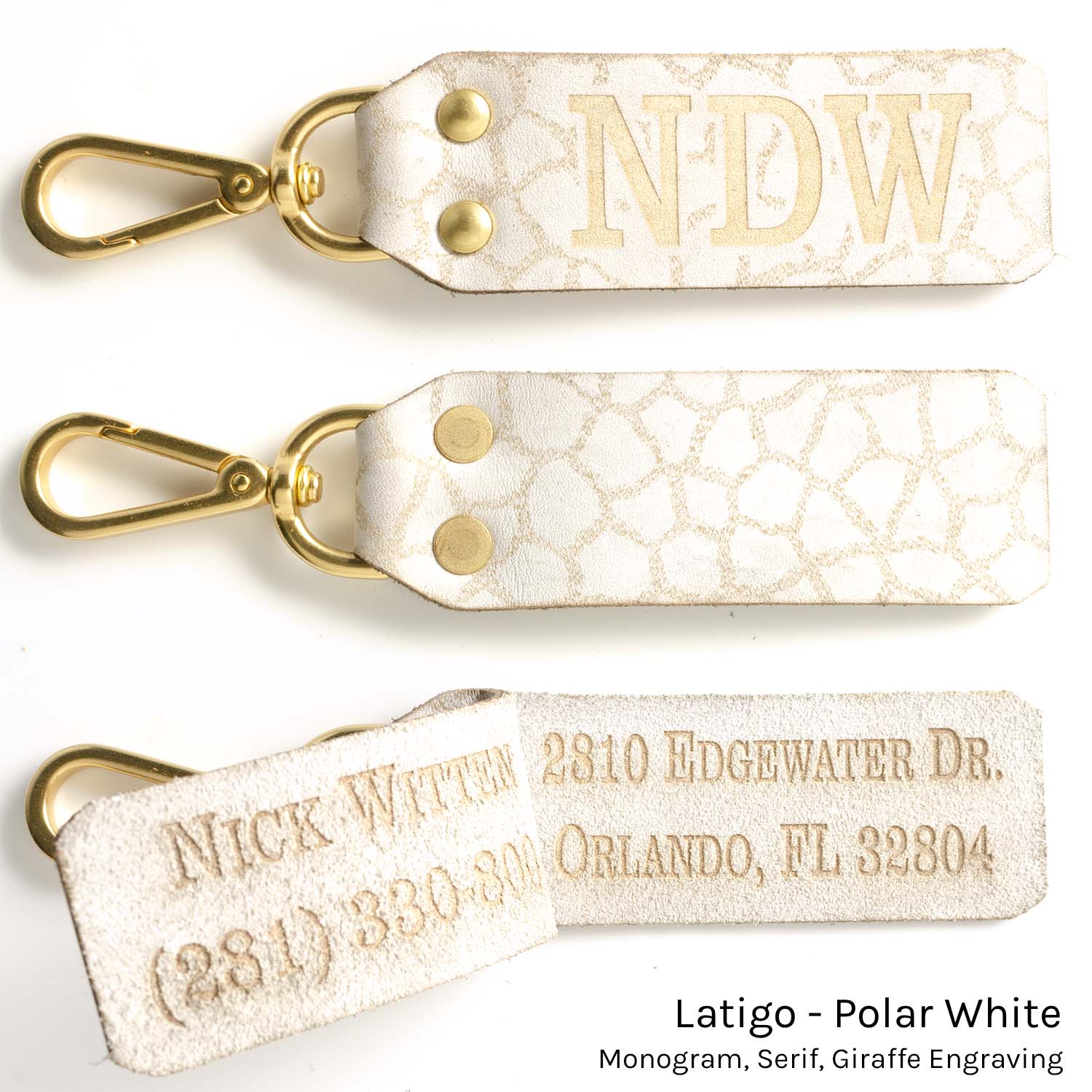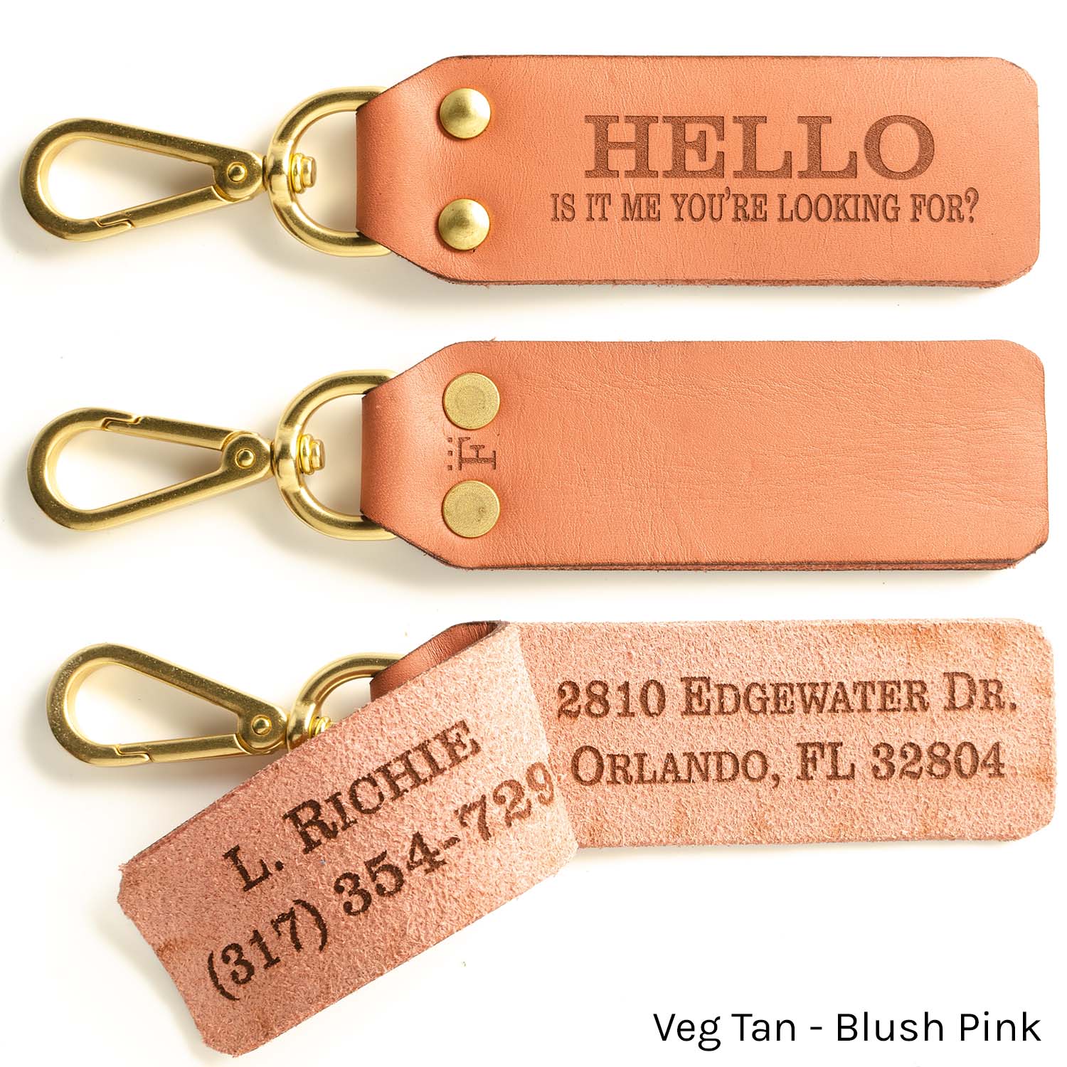 Clip attaches to exposed rings/straps on your luggage/golf bag/etc. (if your bag doesn't have exposed rings to clip to, see our strap loop design). Solid brass clip/rivets, contact information engraved inside flap so that creeper at the airport doesn’t get your address when you’re on your way out of town (typically we don't suggest engraving addresses on luggage...this isn't the 50s, nobody is going to bring you your bag, you're lucky if they'll email/text you, so no need to have your empty home advertised on your luggage).