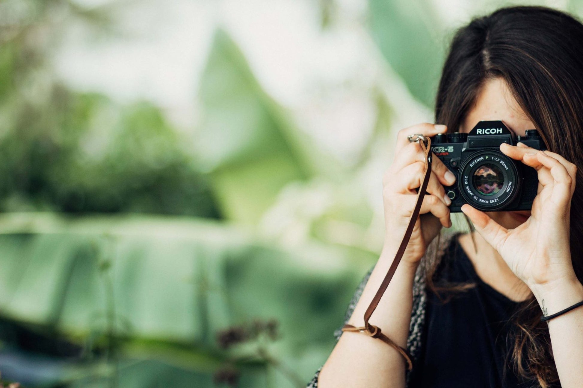 The best camera is the one you have with you. The best strap for that camera is the one already on your wrist posing as a wrap bracelet. Stainless steel snap at one end, integrated wrist loop on the other. Place loop around wrist, wrap three times, and snap to the rivet loop to close. Unsnap and clip to camera/clipboard/wtFFF ever you're worried about dropping.